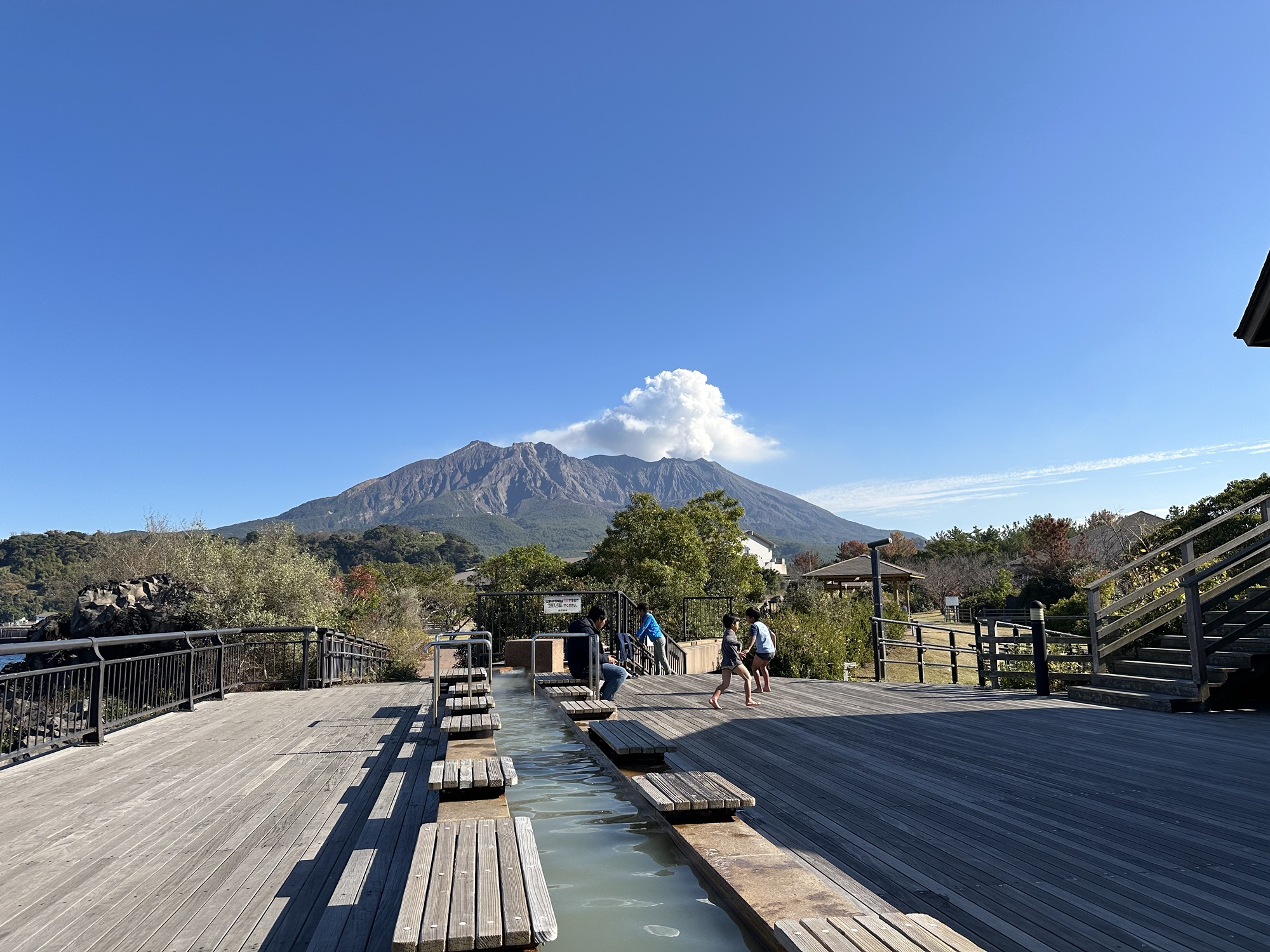 - 3日目: この日も朝から加治屋まちの杜公園へ。その後、11時40分のフェリーで桜島へ。ランチは船内のうどん(とてもおいしい)。ビジターセンターで展示を見たり、足湯に浸かったり、道の駅で小みかんソフトクリームを食べたり、桜島自然恐竜公園でたくさんローラー滑り台に乗ったり。まだ島のごく一部しか見ていませんが、子供たちが飽きずに過ごせて「また行きたい」と言っていて良かったです。夕食はホテルの近くで豚しゃぶなどを食べて、また天文館公園で遊んでから部屋に帰りました。