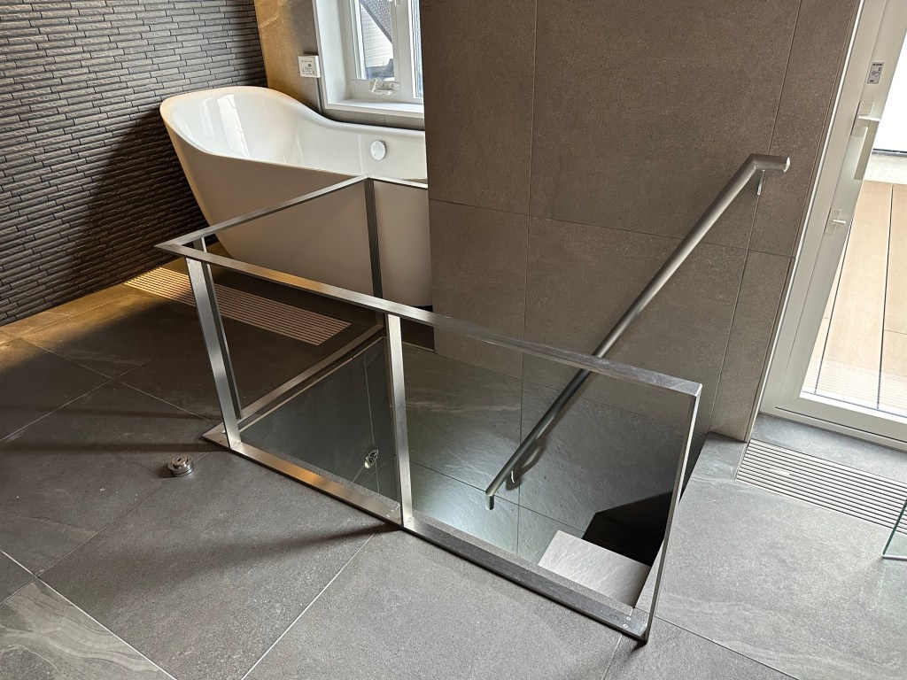 トイレは2つ。トイレ前の手洗いに加えて、脱衣所に2つ分の連結シンクがあるので大人数で泊まっても混雑の心配はなさそうです。ドライヤー(x 2)、洗濯乾燥機もありました。お風呂は一般的なものですが、黒とグレーのモダンな雰囲気です。