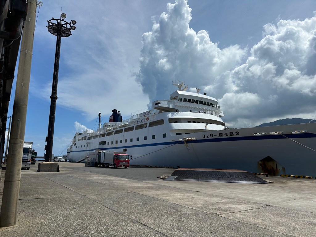 行きも帰りも「フェリー屋久島2」のはずだったが、帰りは台風の影響でなかなか出港できなく、トッピーの高速船に変更しました。初めてフェリー屋久島2に乗ったので、とてもいい経験でした。